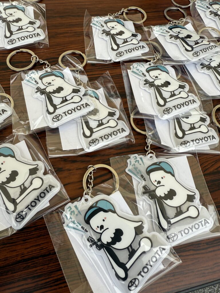 そのため交通安全運動の期間中、店舗へご来店いただいたお客様に、夜間の歩行者の安全を守るための「反射材キーホルダー」を無料で配布しました。反射材は車のライトに反射し、ドライバーからの視認性を高める効果があり、歩行者が遠くからでも確認しやすくなるため、事故を未然に防ぐ重要なアイテムです。